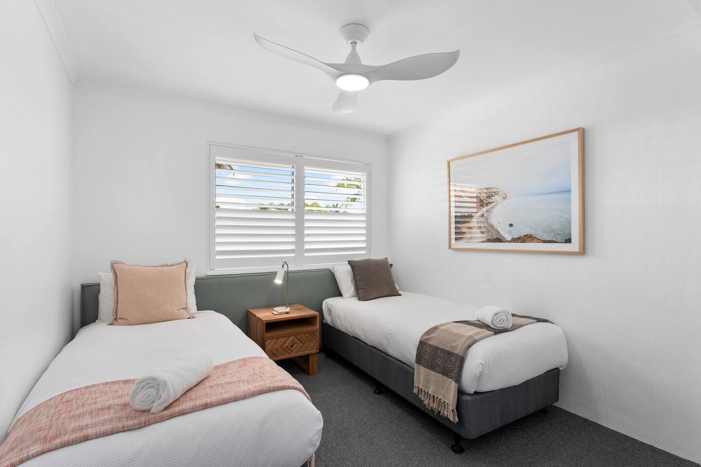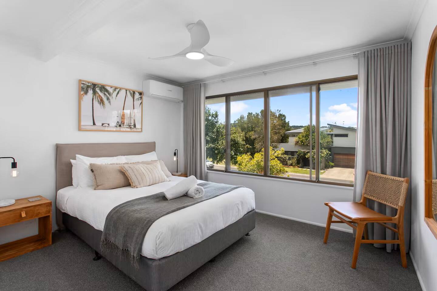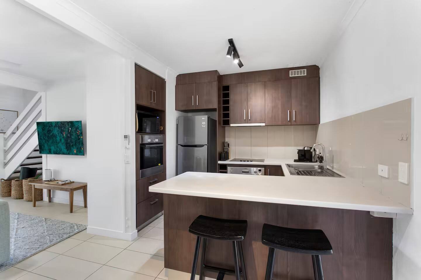 This gorgeous townhouse flows over two levels. Upstairs there are two bedrooms along with a bathroom. The master bedroom has views across to the river and a queen bed, the second bedroom is well apportioned with two singles. Both rooms have wardrobes. The master bedroom is air-conditioned along with fans / lights in both bedrooms and cross ventilation flow. Enjoy quality linens, furnishings, and new beds for a fabulous sleep. Walk downstairs to the open plan living area which includes the kitchen, dining and living areas. The kitchen has everything you need for the perfect family holiday including all mod cons and coffee pod machine. The living room has high quality furniture and a Smart TV which is perfect for chilling out on rainy days, a long day at the beach or on the river. The living area flows onto a patio with table and chairs and a share private grassed garden area (newly landscaped) with gate access onto Noosa Parade. You will find the private laundry room with washing machine and dryer, along with second toilet in a locked separate room next to the front door. Bus stops are within easy access, two to three minutes walking distance going to Hasting St, Sunshine Beach or Noosaville.